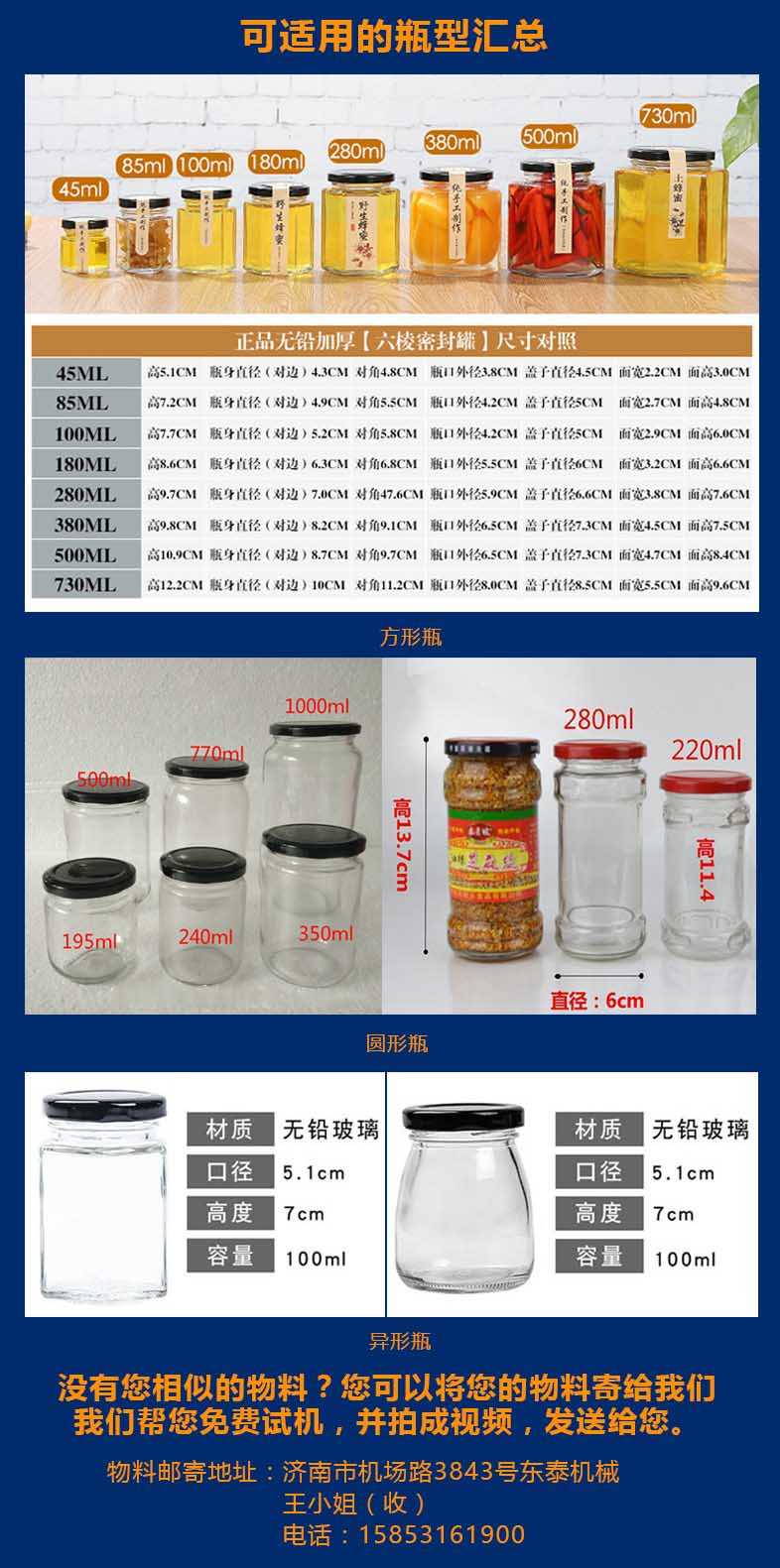 6.旋蓋機構高度可快速調節,可適用相同口徑、不同高度的瓶子旋蓋;更換部分零件即可實現不同瓶徑、不同口徑的旋蓋,更換快捷方便。